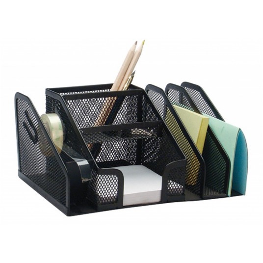Przybornik na biurko, wykonany z metalowej siateczki powlekanej lakierem