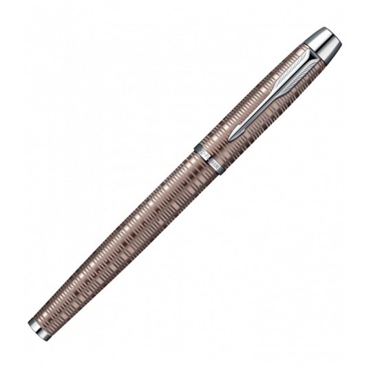 Korpus oraz skuwkę pióra wiecznego Parker IM Premium Brown Shadow CT wykonano z mosiądzu pokrytego metalicznym, cienisto-brązowym lakierem o charakterystycznej fakturze