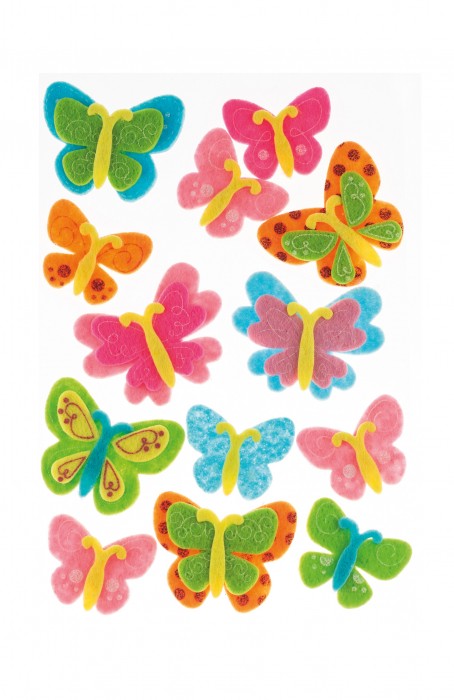 Zestaw naklejek z filcu w kilku kolorach i rozmiarach znakomicie wyzwalają dziecięcą aktywność twórczą wszelkiego rodzaju