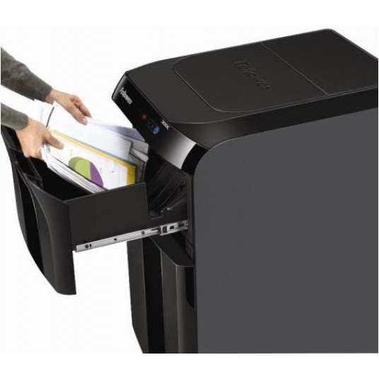 Pierwsza profesjonalna i wysokowydajna niszczarka biurowa, która w praktyce a nie tylko w reklamie, nie wymaga dodatkowego użycia rąk przy podawaniu papieru. Tylko niszczarka Fellowes AutoMax™ oferuje w 100% automatyczne niszczenie,