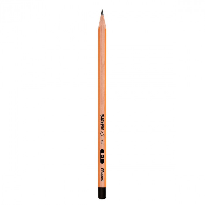 Ołówek BLACKPEPS B bez gumki, wykonany z drewna lipowego, ergonomiczny, trójkatny kształt, odporny na złamania grafit, czytelne oznaczenie twardości.