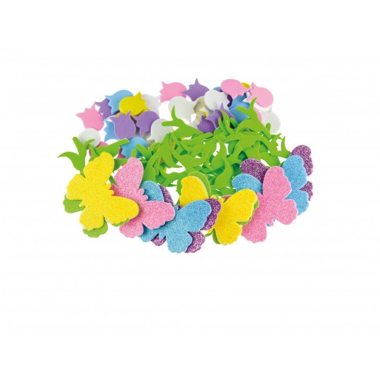 Zestaw naklejek z pianki w kilku kolorach i rozmiarach znakomicie wyzwalają dziecięcą aktywność twórczą wszelkiego rodzaju