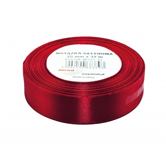 Wstążka satynowa Brewis 25mm 32m bordowa