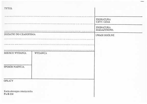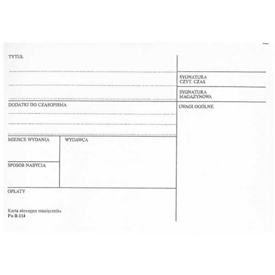 Karta akcesyjna miesięcznika (karton) Typograf B 114