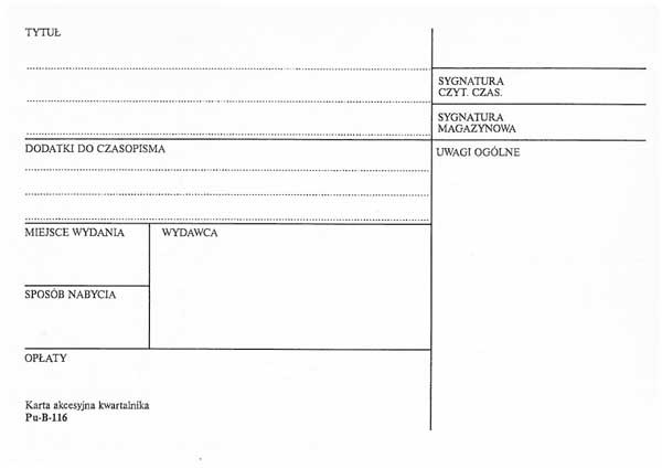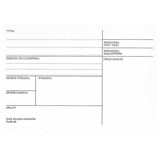 Karta akcesyjna kwartalnika (karton) Typograf B 116