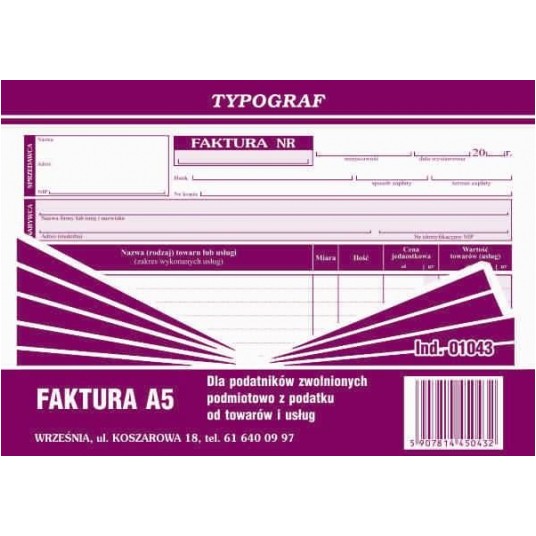 Faktura dla podatników zwolnionych podmiotowo z podatku od towarów i usług (poziom)