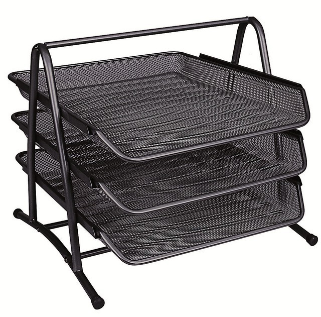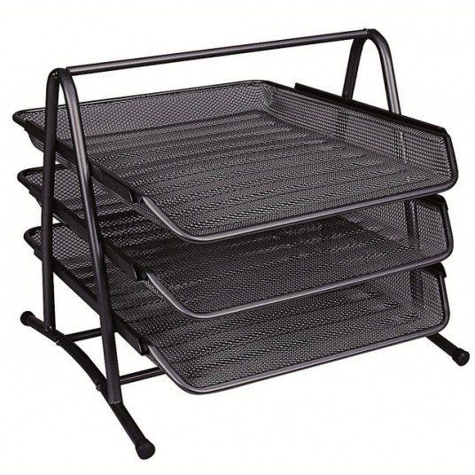 Zestaw trzech wysuwanych szuflad wykonany z metalowej siateczki powlekanej lakierem