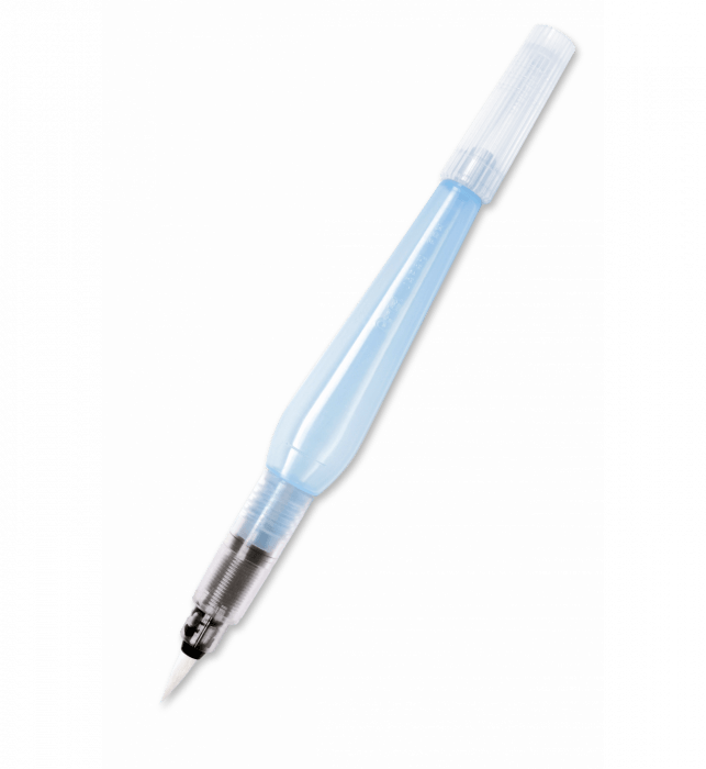 Pędzelek wodny FRH. Niezastąpiony w pracy z akwarelami i kredkami akwarelowymi. Do tworzenia ilustracji, pejzaży, melancholijnych obrazów. Prosty w obsłudze, łatwy w czyszczeniu (moczymy go w wodzie). Służy do rozmazywania kolorów. Higieniczny i wygodny w użytkowaniu. Zastępuje tradycyjny pędzelek i kubek na wodę. Przezroczysta obudowa pozwala kontrolować ilość płynu w zbiorniczku. Poprzez delikatne ściśnięcie obudowy doprowadzamy wodę do końcówki.