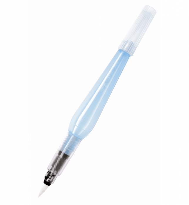 Pędzelek wodny FRH. Niezastąpiony w pracy z akwarelami i kredkami akwarelowymi. Do tworzenia ilustracji, pejzaży, melancholijnych obrazów. Prosty w obsłudze, łatwy w czyszczeniu (moczymy go w wodzie). Służy do rozmazywania kolorów. Higieniczny i wygodny w użytkowaniu. Zastępuje tradycyjny pędzelek i kubek na wodę. Przezroczysta obudowa pozwala kontrolować ilość płynu w zbiorniczku. Poprzez delikatne ściśnięcie obudowy doprowadzamy wodę do końcówki.