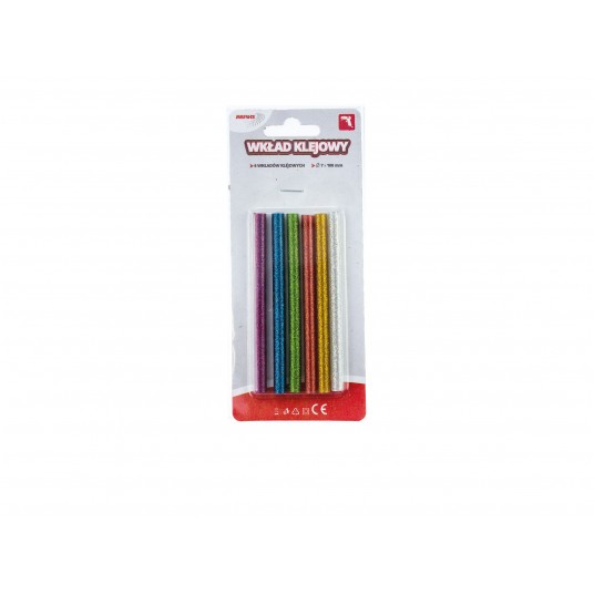 Zestaw kolorwych wkładów klejowych z brokatem 7 mm przeznaczonych do aplikacji na gorąco przy użyciu pistoletu, który jest idealny do pracy w domu, warsztacie i w garażu