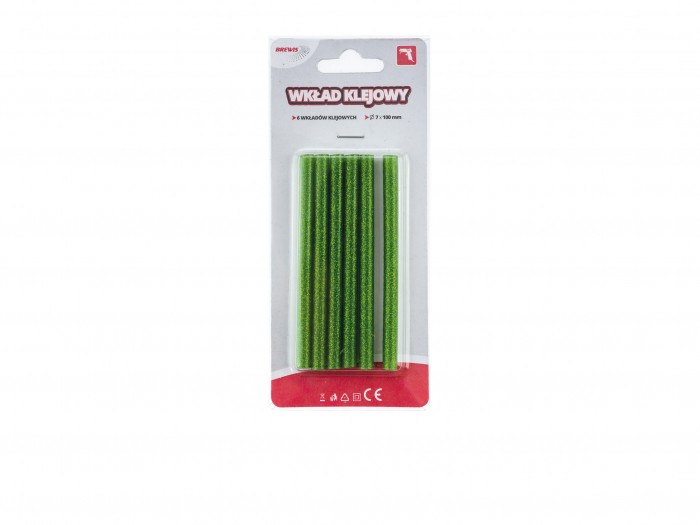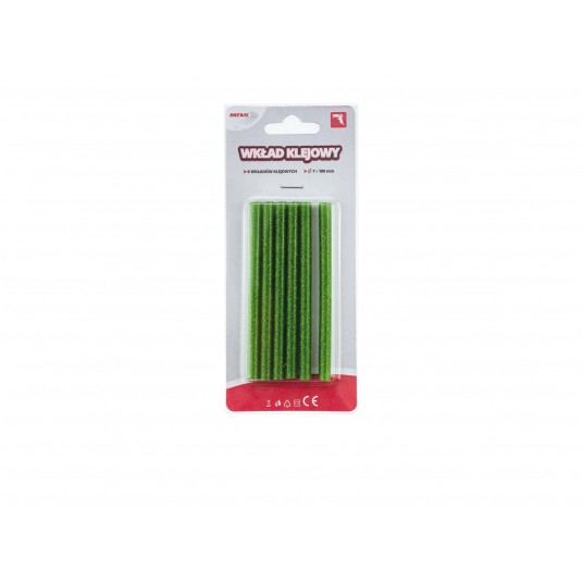 Zestaw wkładów klejowych zielonych 7 mm przeznaczonych do aplikacji na gorąco przy użyciu pistoletu, który jest idealny do pracy w domu, warsztacie i w garażu