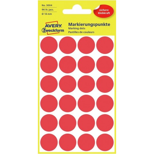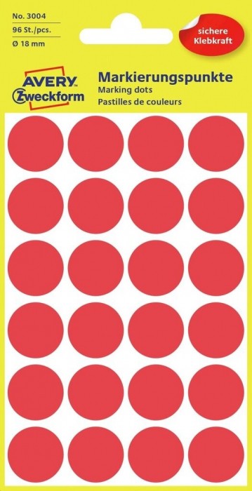 Kółka do zaznaczania kolorowe; 96 etyk./op., O18 mm, czerwone