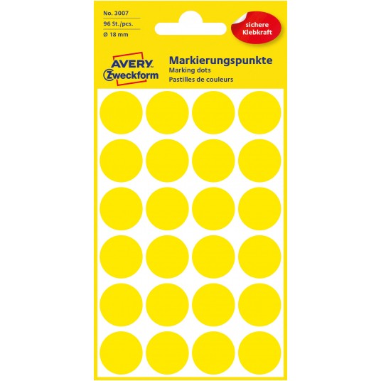 Kółka do zaznaczania kolorowe; 96 etyk./op., O18 mm, żółte