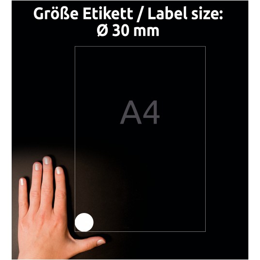 Etykiety Heavy Duty; A4, 20 ark./op., O30mm, białe, poliestrowe