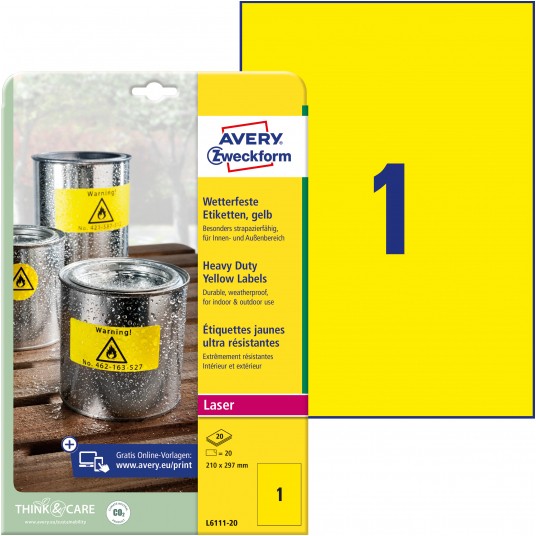 Niezwykle wytrzymałe etykiety samoprzylepne wykonane z żółtego poliestru.