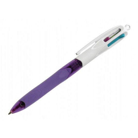 4 kolory w jednym długopisie: fioletowy, różowy, turkusowy i jasnozielony