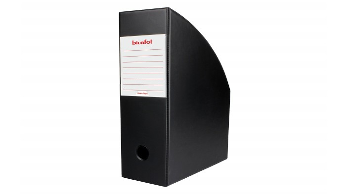 Pojemnik na czasopisma Biurfol w klasycznym czarnym kolorze to praktyczne rozwiązanie do codziennej organizacji dokumentów, katalogów i materiałów biurowych. Wykonany z trwałej kolorowej folii PVC i usztywniony tekturą od wewnątrz, zapewnia stabilność oraz odporność na odkształcenia nawet przy intensywnym użytkowaniu. Format A4 o ściętych bokach umożliwia szybki dostęp do zawartości i wygodne przeglądanie dokumentów.✔️