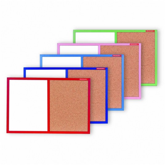 Powierzchnia tablicy wykonana z naturalnego materiału korkowego i ze stali lakierowanej o właściwościach suchościeralnych i magnetycznych.