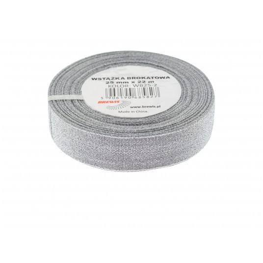 Wstążka Brewis brokatowa 25 mm 22 m srebrna
