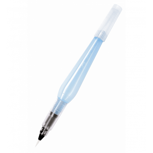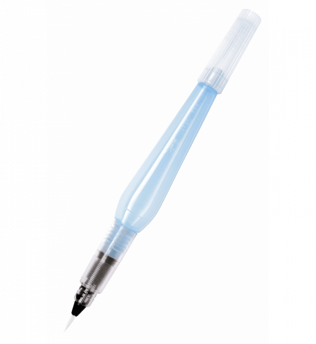 Pędzelek wodny FRH. Niezastąpiony w pracy z akwarelami i kredkami akwarelowymi. Do tworzenia ilustracji, pejzaży, melancholijnych obrazów. Prosty w obsłudze, łatwy w czyszczeniu (moczymy go w wodzie). Służy do rozmazywania kolorów. Higieniczny i wygodny w użytkowaniu. Zastępuje tradycyjny pędzelek i kubek na wodę. Przezroczysta obudowa pozwala kontrolować ilość płynu w zbiorniczku. Poprzez delikatne ściśnięcie obudowy doprowadzamy wodę do końcówki.