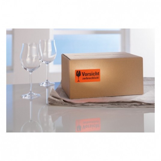 Ostrzegawcze etykiety wysyłkowe Ostrożnie szkło 200 etyk. 74x100mm czerwone