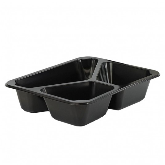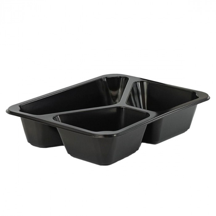 Pojemnik trójdzielny ma wysoką jakość, jest odporny na wysokie i niskie temperatury, posiada wzmocnione rogi oraz szeroki rant do zgrzewu, który zapewnia szczelne zamknięcie.