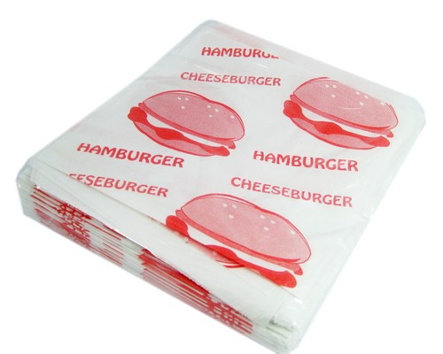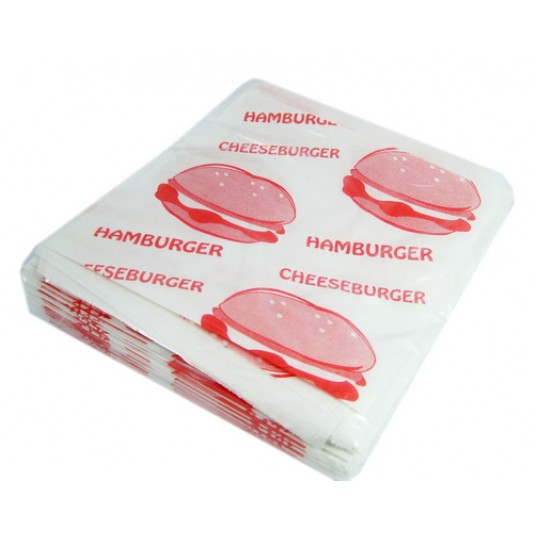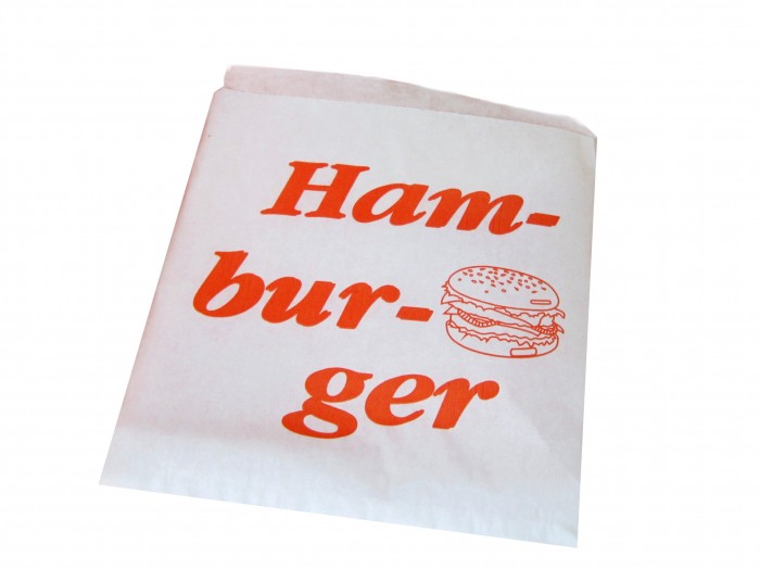 Papierowe, foliowane opakowanie typu koperta, przeznaczone do pakowania hamburgerów na wynos.
