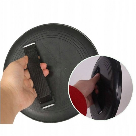 Na odwrocie tarczy, znajdziemy zaczep na rękę