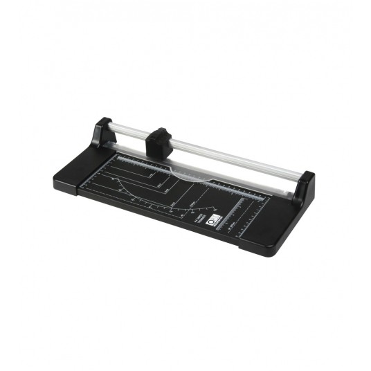 - do formatu A4 - estetycznie zaprojektowany z bardzo czytelnym szablonem formatów i podziałką milimetrową - posiada solidny nóż krążkowy, plastikową listwę docisku - metalowa podstawa - długość cięcia: 320 mm - tnie do 10 kartek