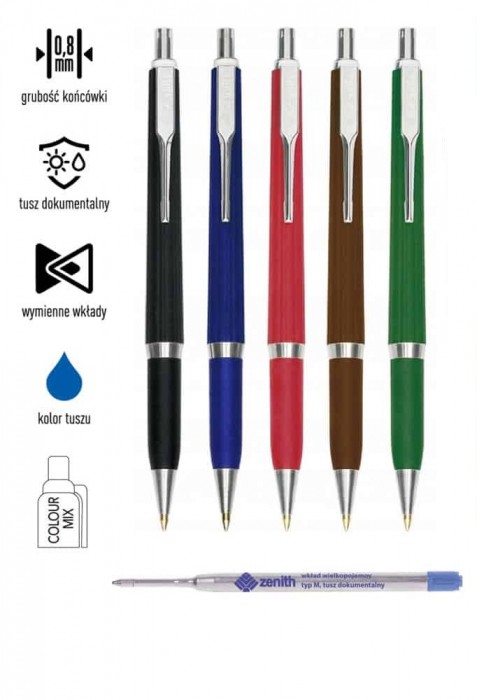 Długopisy automatyczne to jedne z najbardziej uniwersalnych narzędzi piśmienniczych, cenione za wygodę, trwałość i łatwość obsługi. Modele z dokumentalnym tuszem, takie jak Zenith 7, gwarantują wieloletnią czytelność zapisu, co ma znaczenie w pracy biurowej i administracyjnej. Solidna konstrukcja, wymienne wkłady i elegancki design sprawiają, że długopisy automatyczne są niezbędnym elementem wyposażenia każdego biurka.⚙️