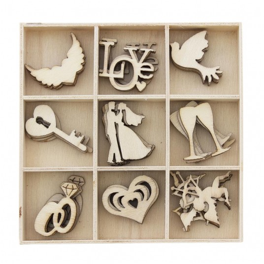 Ozdoby drewniane w pudełku Galeria Papieru 45szt ślub