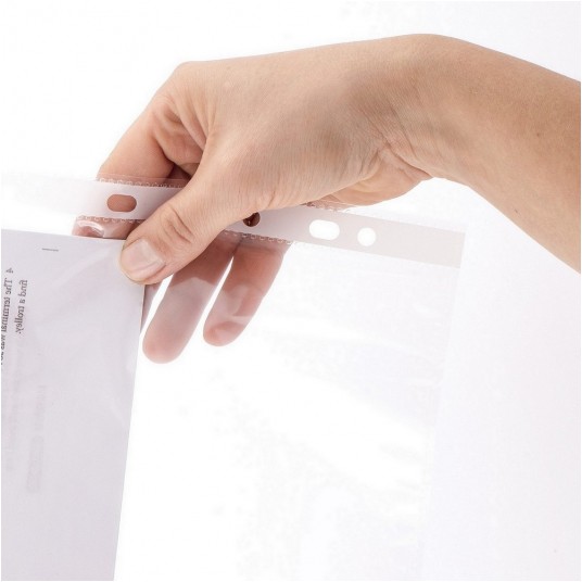 Wzmocniony pasek z uniwersalną perforacją umożliwia wpięcie koszulek do każdego typu segregatora