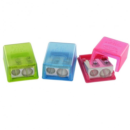 Praktyczna, plastikowa obudowa w 4 atrakcyjnych kolorach (żółty, różowy, niebieski, limonkowy) może pełnić funkcję pojemnika na ostrużyny