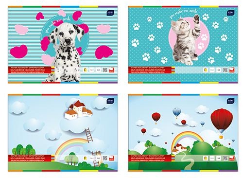 8 kolorowych kartek samoprzylepnych z kredy, sklejone na podkładzie z tektury