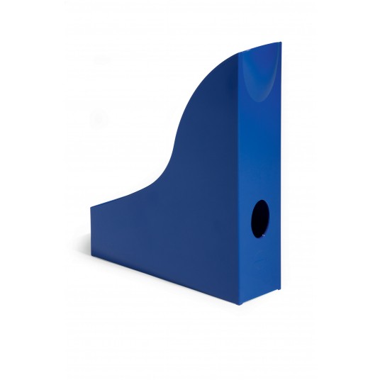 Niebieskie pojemniki na katalogi z uchwytem ułatwiającymi przenoszenie