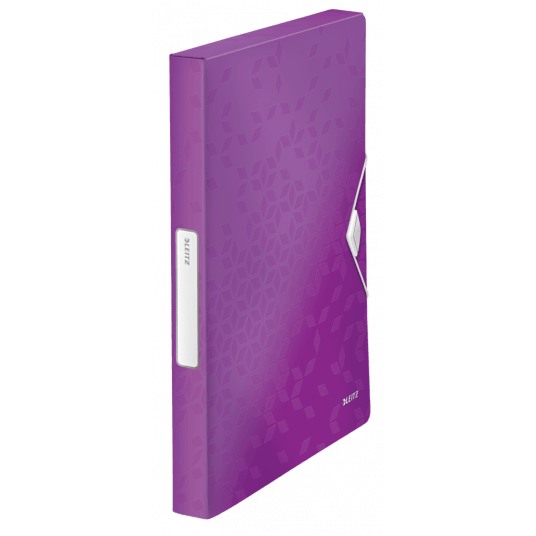 Mieści teczki z gumką (o grzbiecie 15 mm), albumy ofertowe, standardowe teczki i koszulki