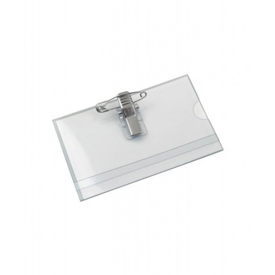 Identyfikator od firmy D.Rect wykonany z przezroczystego tworzywa sztucznego.