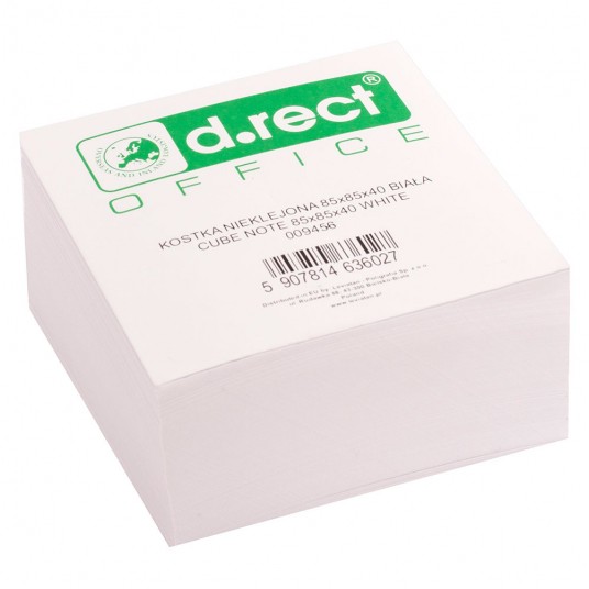 Tradycyjne białe karteczki nieklejone w rozmiarze 85 x 85 mm, przeznaczone do sporządzania notatek oraz pozostawiania krótkich wiadomości i przypomnień. Znajdują zastosowanie w biurze, domu, a także szkole. Wysokość kostki 40 mm.