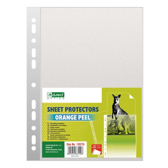 Antystatyczne i antyrefleksyjne koszulki przeznaczone do segregowania dokumentów w formacie A4. Wykonane z folii groszkowej PP o grubości 50 mic. Chronią dokumenty przez zabrudzeniem i zniszczeniem. Wzmocniony pasek z uniwersalną perforacją umożliwia wpięcie koszulek do każdego typu segregatora. Otwierane od góry. Opakowanie foliowe zawiera 100 sztuk koszulek.