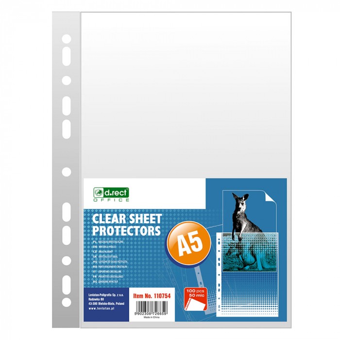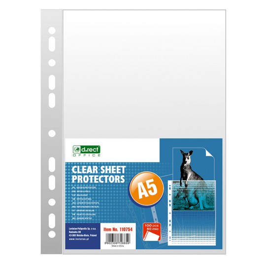 Antystatyczne i antyrefleksyjne koszulki przeznaczone do segregowania dokumentów w formacie A5. Wykonane z folii krystalicznej PP o grubości 50 mic. Chronią dokumenty przez zabrudzeniem i zniszczeniem. Wzmocniony pasek z uniwersalną perforacją umożliwia wpięcie koszulek do każdego typu segregatora. Opakowanie foliowe zawiera 100 sztuk koszulek.