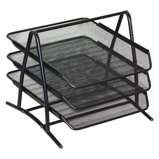 Szufladki wykonane są z metalowej siatki pokrytej czarnym lakierem.