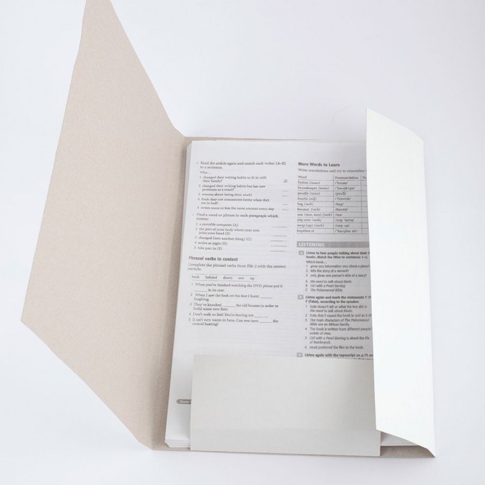 Gumka oraz trzy wewnętrzne skrzydła pomagają zabezpieczyć dokumenty i zapobiegają ich wypadaniu.