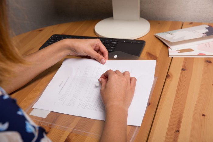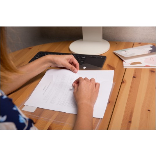 Teczka wykonana z transparentnego polipropylenu na wzór koperty listowej