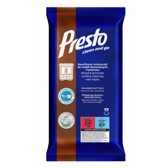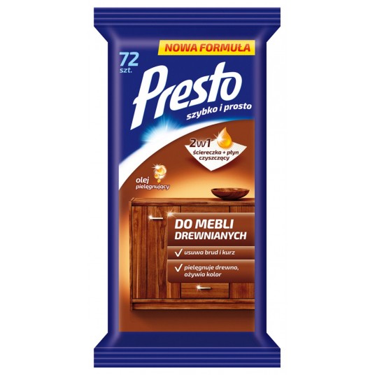 Nawilżane ściereczki Presto do mebli drewnianych to wygodne i skuteczne rozwiązanie do codziennej pielęgnacji powierzchni drewnianych oraz drewnopodobnych. Zostały opracowane z myślą o czyszczeniu lakierowanych mebli drewnianych, zapewniając szybkie usuwanie kurzu i zabrudzeń bez konieczności stosowania dodatkowych preparatów. Dzięki odpowiednio dobranej formule każda ściereczka pozwala zachować estetyczny wygląd mebli nawet przy regularnym użytkowaniu.✨️