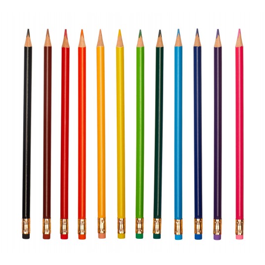 Kredki ołówkowe zakończone gumką charakteryzują się doskonałą jakością i wyrazistością kolorów.