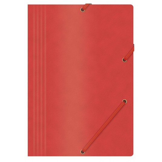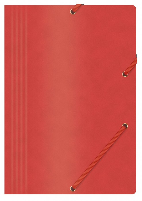 Zamykana za pomocą 2 płaskich, narożnych gumek w kolorze teczki