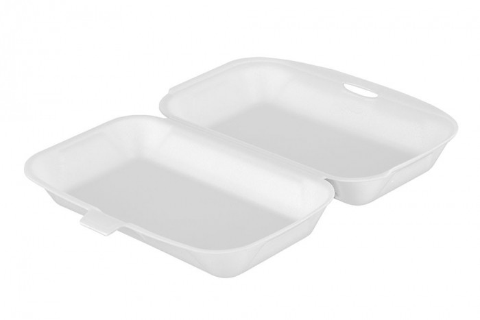 Pojemnik styropianowy jednokomorowy, na ½ obiadu, chroniący gorące posiłki, przed zbyt szybką utratą ciepła.