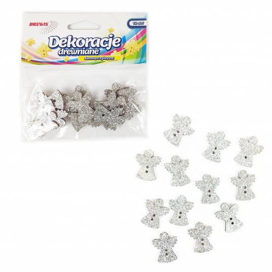 Wzbogać swoje świąteczne projekty o drewniane aniołki brokatowe Brewis. Wykonane z trwałej sklejki, jednostronnie pokryte srebrnym brokatem, a z drugiej strony w naturalnym odcieniu drewna z kółkiem samoprzylepnym, pozwalają na łatwe umieszczanie na różnych powierzchniach. Doskonałe do kartek, albumów, prezentów, stroików i aranżacji home decor. W opakowaniu znajduje się 12 sztuk o wysokości 3 cm. ✨️