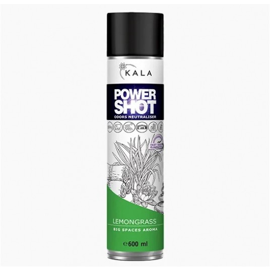 Neutralizator nieprzyjemnych zapachów, aromatyzer, odświeżacz Kala POWER SHOT zapach LEMON GRASS 600 ml to cudowny orzeźwiający cytrusowy zapach, który pobudzi zarówno Twoje ciało jak i umysł.