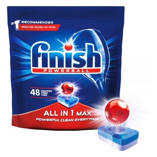 Finish All in 1 Max ze wzmocnionym Powerball zapewnia doskonałą czystość i połysk jakich oczekujesz